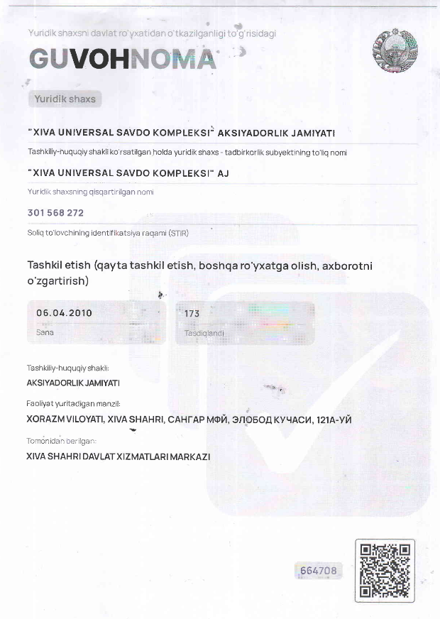Xiva universal savdo kompleksi AJni ta'sis yig'ilishi bayoni