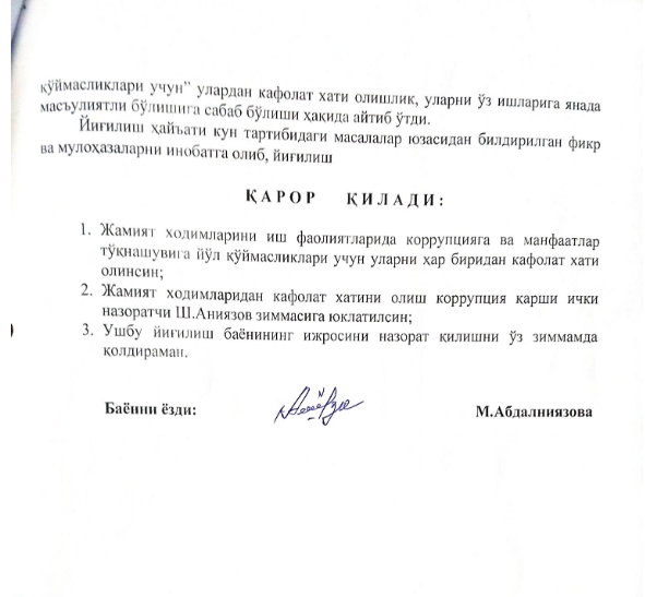 • Yuqori boshqaruv organi qarorlari
